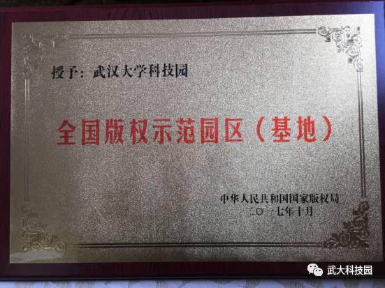 此次获批全国版权示范园区(基地),是武汉大学科技园继国家大学科技园、国家高校学生科技创业实习基地、国家级产业联盟、国家级科技企业孵化器之后获得的又一“国字号”殊荣。据了解,获批该基地,必须在智力成果的创作与传播、产业发展、守法维权、教学科研等方面取得优异成绩,并在全国有示范效应。